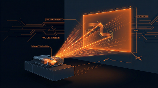 For projection systems in living or family rooms, UST projectors avoid the eyesore of a ceiling-mounted projector, and many UST projection screens have awesome ambient light rejection (ALR) capabilities to maximize image brightness and contrast.