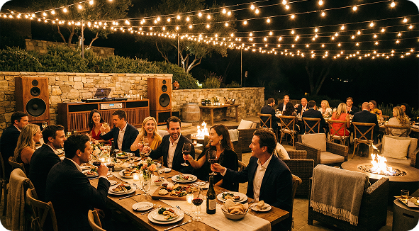 In any case, you'll want reliable outdoor WiFi to stream the music without dropouts. Boosting your WiFi with an outdoor-rated WiFi access point is usually part of the quoted project to make it a comprehensive installation.
